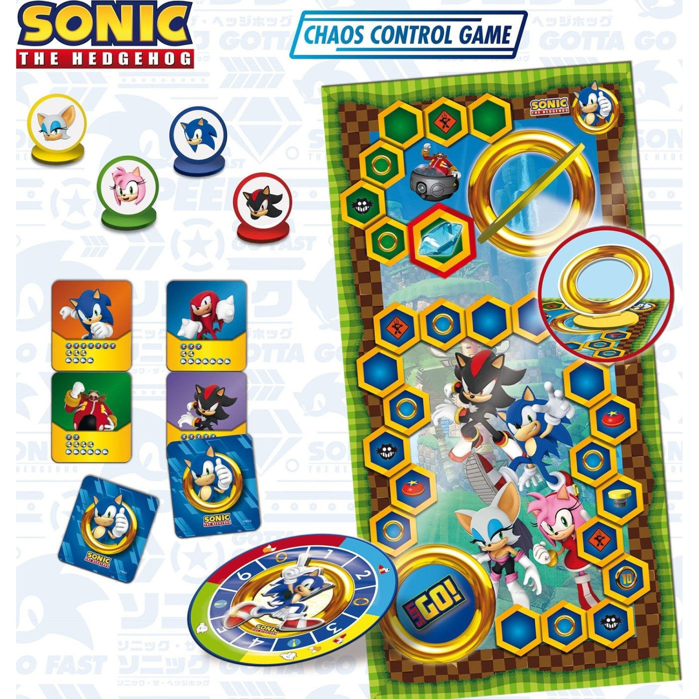 Les amateurs de l'univers de Sonic et des jeux vidéos, aimeront le jeu de société Chaos Control Game Sonic ! Rassemblez au moins 5 jetons tout au long du parcours afin de traverser l'anneau tridimensionnel et atteindre l'ultime niveau. Le but du jeu est d'être le premier à vous munir du Diamant et sauvez la terre du mauvais Eggman tout en faisant attention aux différents défis qu'il vous faudra affronter tout au long de la partie. Retrouvez les personnages de Sonic dans ce jeu à partir de 6 ans pour 2 à 4 joueurs.