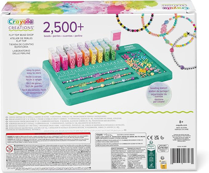Crayola Creations : la gamme dédiée aux filles dès 8 ans qui leur permet de créer, de s'exprimer et de personnaliser leur univers de façon originale et créative. Créer ses propres bijoux n'a jamais été aussi amusant ! Les possibilités créatives sont infinies grâce aux perles fournies dans des sachets refermables pratiques et mignons, ainsi qu'au plateau créatif inclus pour mieux les organiser. Utilisez les récipients colorés pour verser les perles sur le plateau et créer des bijoux élégants. Une riche collection de perles avec 2 500 couleurs assorties, des perles métalliques et des breloques oursons en gélatine, parfaites pour les bracelets, colliers et bien plus encore ! Réalisez jusqu'à 50 projets pour des heures de créativité ! Contenu : 87 g de perles assorties, 5 breloques oursons en gélatine, élastique, 19 sachets refermables, plateau créatif, instructions avec de nombreuses idées.