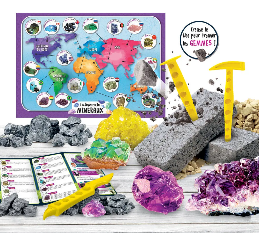 Découvrez le kit scientifique IMAGENIUS POCKET DÉCOUVERTE DES MINÉRAUX, idéal pour les enfants de 8 ans et plus. Ce kit ludique permet d'explorer le monde des minéraux grâce a un bloc a creuser, des minéraux authentiques, et des outils inclus. Apprentissage amusant et durable, il stimule la curiosité scientifique et la logique. Age de 7 ans jusqu'à 12 ans .