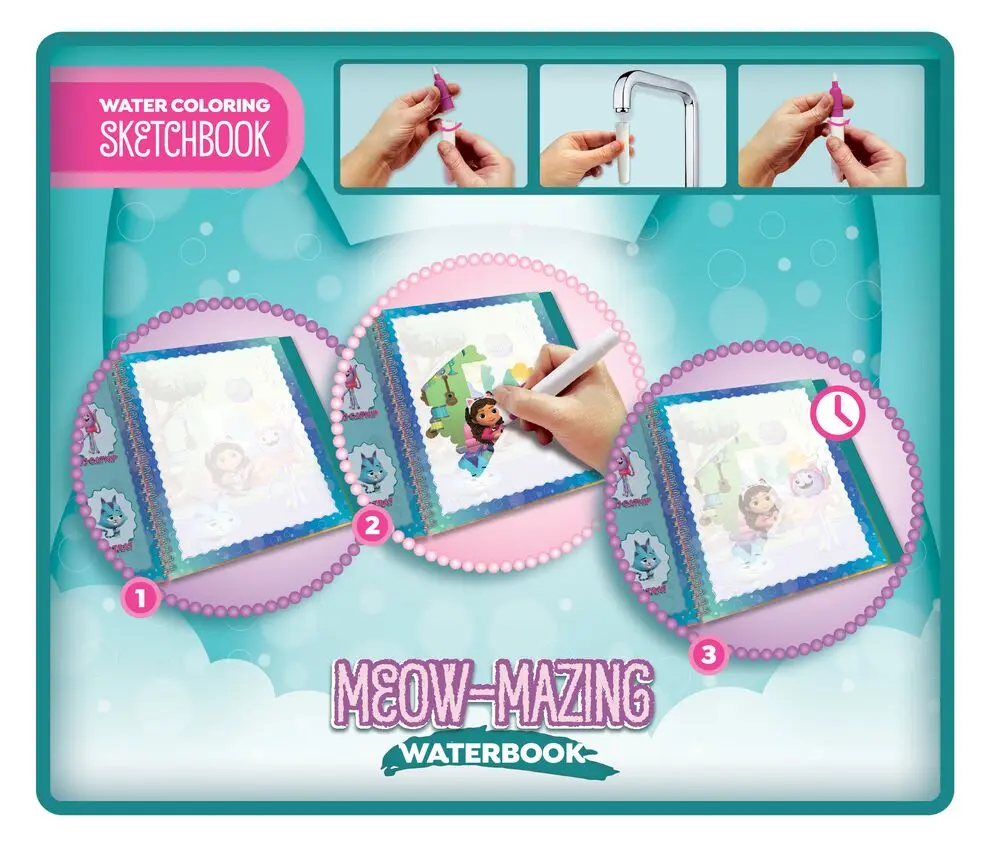 Un livre fantastique fait d'un papier spécial qui révèle les dessins à travers l'eau. Le livre se compose de pages vierges qui, lorsqu'elles sont mouillées avec le stylo à eau, révèlent les images cachées à l'intérieur. Après 5/10 minutes, les pages sèchent et le dessin disparaît naturellement.
