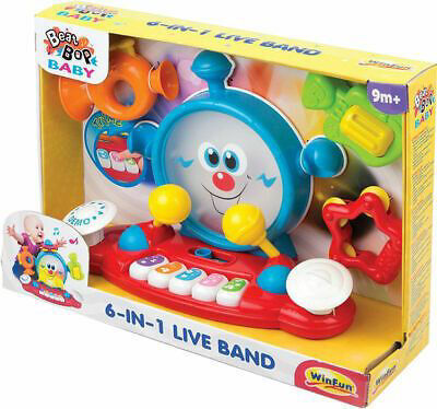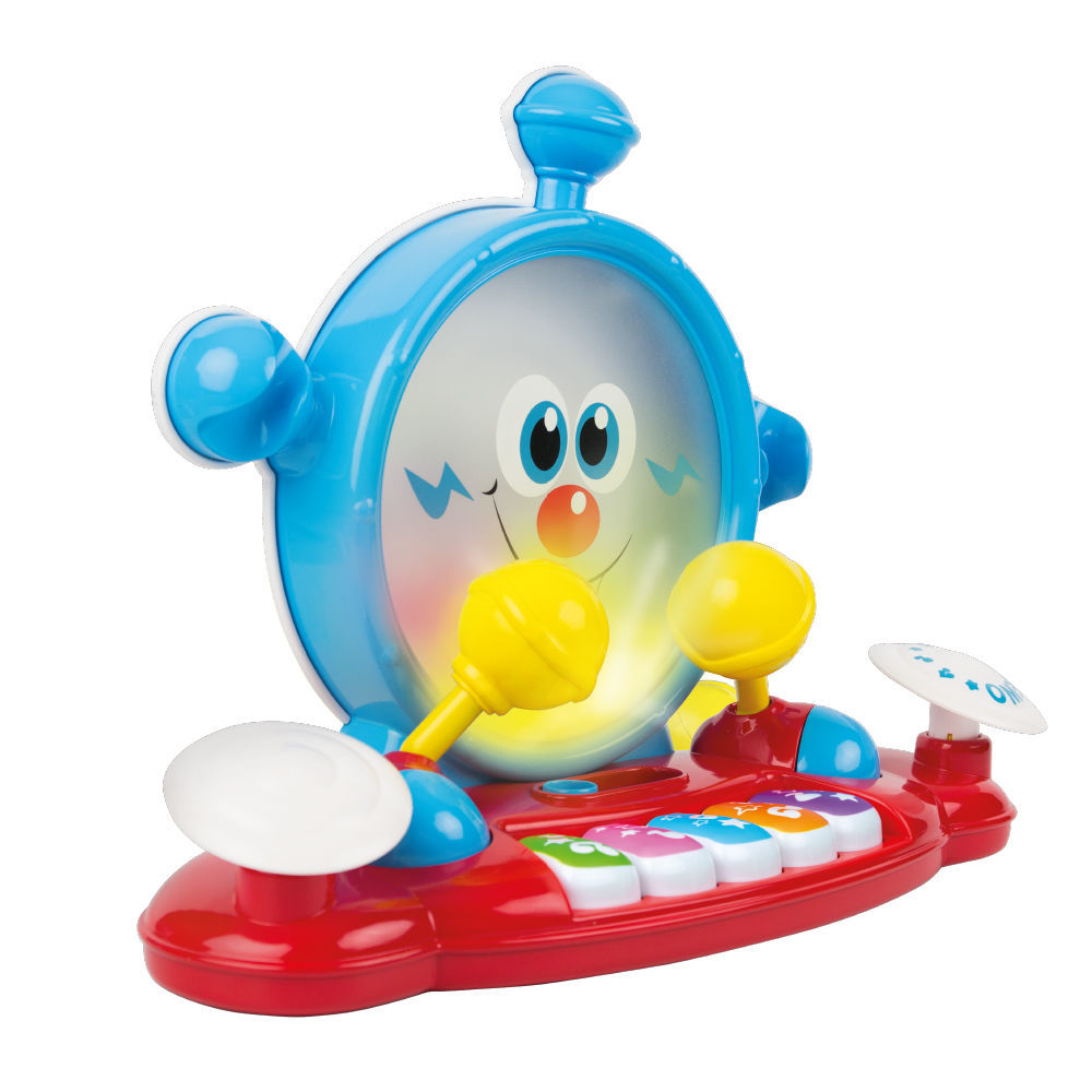 Voici un jouet musical complet qui rendra votre enfant un véritable chez d'orchestre . Ce winfun orchestre comprend une grosse caisse avec effets de lumière, un piano à 5 touches et des cymbales boom-clash. Plus tambourin, trompette et guitare amovibles. Ce jouet produit des effets sonores amusants et des mélodies joyeuses. Idéal comme cadeau d'anniversaire pour 9 mois et plus .