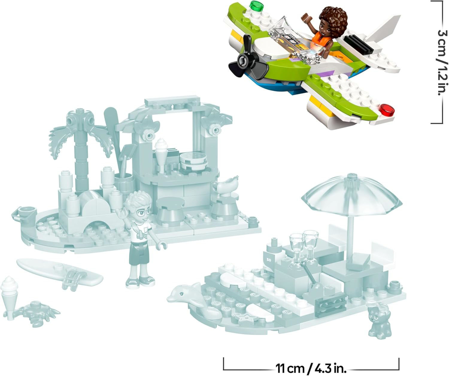 Ce jouet de construction 2-en-1 invite les enfants à construire et reconstruire différentes scènes de plage. La valise créative de plage LEGO Friends (42672) est un beau cadeau pour les petites filles et les petits garçons de 5 ans et plus. Les enfants construisent 3 modèles différents, puis les transforment pour créer une autre scène ou utilisent les éléments pour laisser parler leur imagination. Ce jeu de construction LEGO, parfait pour le jeu de rôle, a tout le nécessaire pour construire un hydravion doté d’hélices tournantes, un espace détente avec une planche de surf et un café de plage avec des châteaux de sable, un espace pour s’asseoir et des glaces. La maquette peut se transformer en hors-bord, en terrasse et en pizzeria avec un four. Ce jouet interactif inclut 2 mini poupées, un chien et un dauphin. Après la construction, les éléments peuvent être rangés dans la valise avant la prochaine aventure. Le jouet LEGO s’accompagne d’une feuille d’autocollants qui permet aux enfants de personnaliser la valise. Dimensions – Ce set de 188 pièces inclut un avion qui mesure plus de 3 cm de haut, 11 cm de long et 11 cm de large.