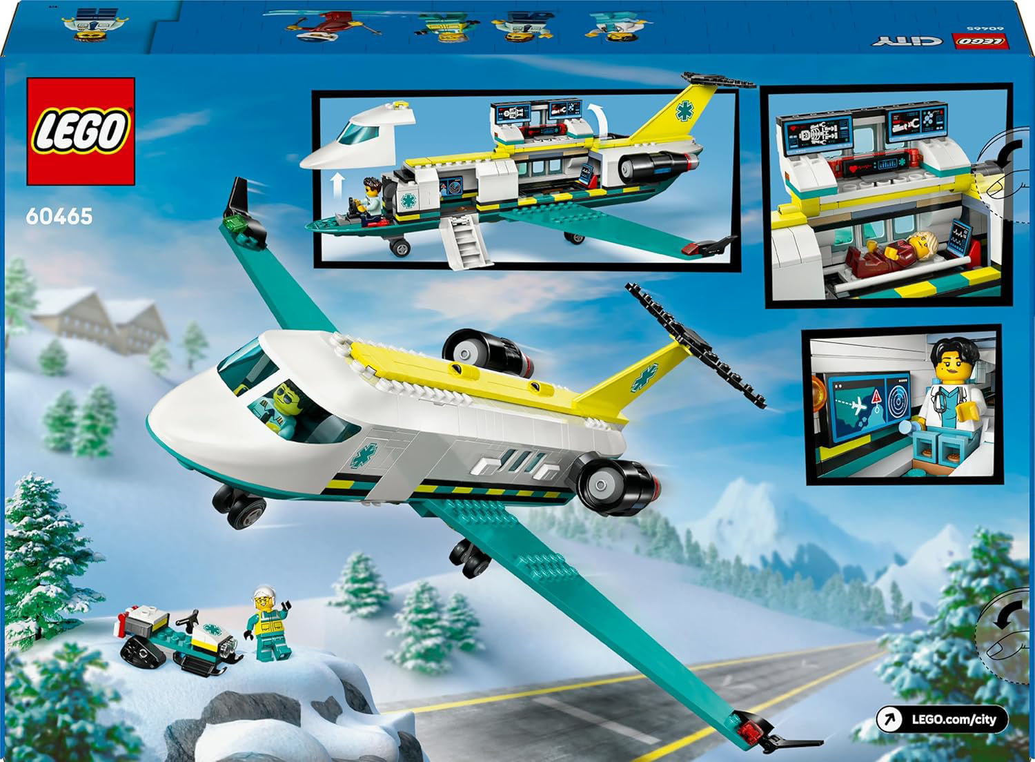 L’imagination des enfants s’envole avec L’ambulance de secours aérienne LEGO City (60465), à partir de 6 ans. Ce bimoteur regorge de fonctionnalités destinées aux fans d’aéromodélisme, dont des escaliers d’embarquement escamotables et un laboratoire embarqué. De nombreux détails inspirent le jeu créatif et des missions de sauvetage riches en action : une motoneige, un petit décor d’aéroport avec manche à air, des accessoires de premiers secours et les minifigurines d’un médecin, d’un ambulancier, d’un pilote et d’une skieuse. Cette maquette d’avion LEGO City figure dans le guide numérique de l’application LEGO Builder, qui invite les enfants à zoomer et faire pivoter les modèles en 3D, à suivre leur progression pendant la construction et à explorer et sauvegarder d’autres sets. Dimensions – L’avion de ce set LEGO City mesure plus de 12 cm de haut, 36 cm de long et 37 cm de large. Le set contient 403 pièces.