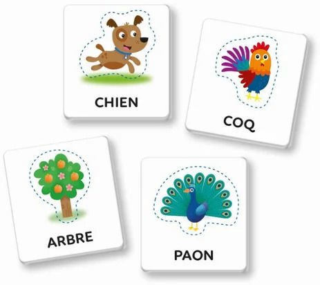 Un puzzle coloré composé de grandes pièces pour faire découvrir l'univers de la ferme aux tout-petits. En plus des grandes pièces à encastrer, le puzzle contient également des silhouettes d'animaux de la ferme à placer dans le bon environnement. Ces mêmes animaux peuvent être placés par-dessus les silhouettes imprimées sur les cartes nomenclature , qui indiquent leur nom. Les silhouettes d’animaux ont également une surface en relief qui invite l’enfant à l’exploration tactile. L’enfant peut ainsi, dès son plus jeune âge, développer ses capacités manuelles et son langage.