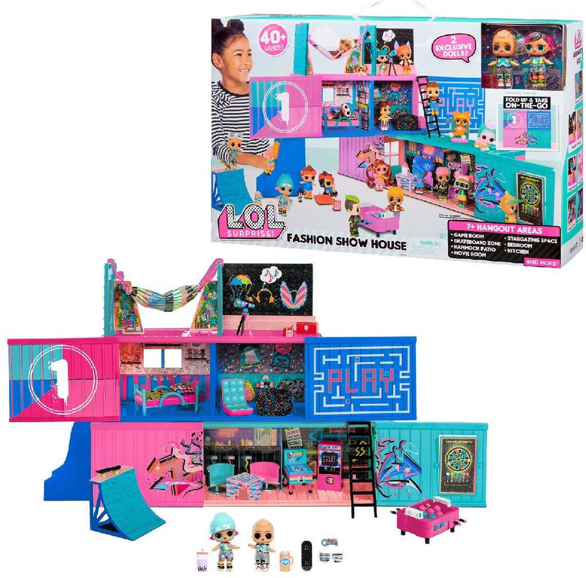 Le nouveau coffret L.O.L. Surprise! Fashion Show House est le meilleur endroit où s’amuser pour tes poupées. Ouvre les deux containers et transforme-les en lieux de rencontre et d’amusement pour tes poupées. Salle de jeu, activités sportives, mobilier exclusif et bien d’autres encore ! Inclut une poupée garçon et une poupée fille exclusifs !