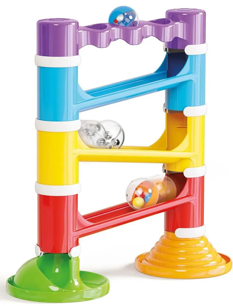 Piste spectaculaire et amusante avec 3 grosses billes sonores. Poussez les billes avec la main, ce sera un vrai plaisir de les voir et d'entendre leur son alors qu'elles descendent de la tour.