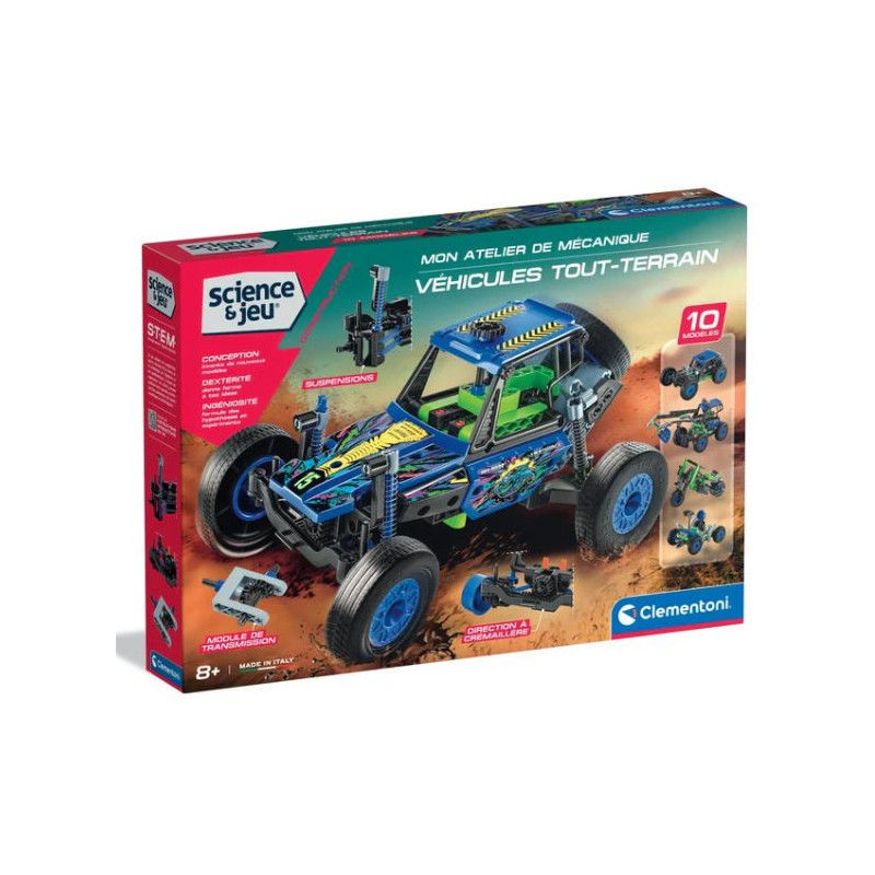 Votre enfant défie les terrains les plus escarpés avec son véhicule tout-terrain mon atelier mécanique de Clementoni ! Avec ce coffret de construction de voitures, votre enfant se prépare à vivre des aventures palpitantes et pleines d'imagination en profitant de 10 modèles à construire. En montant les pièces de sa voiture à construire, il développe sa minutie, sa concentration et sa patience. Grâce aux 10 modèles de voitures inclus, votre enfant profite de nombreuses heures de jeu avec une seule boîte ! Ce coffret voiture à assembler regorge de pièces détaillées, dont différents panneaux, des amortisseurs performants et des engrenages, pour donner vie à des créations uniques. Dimensions : 39.6 x 27.8 x 6 cm