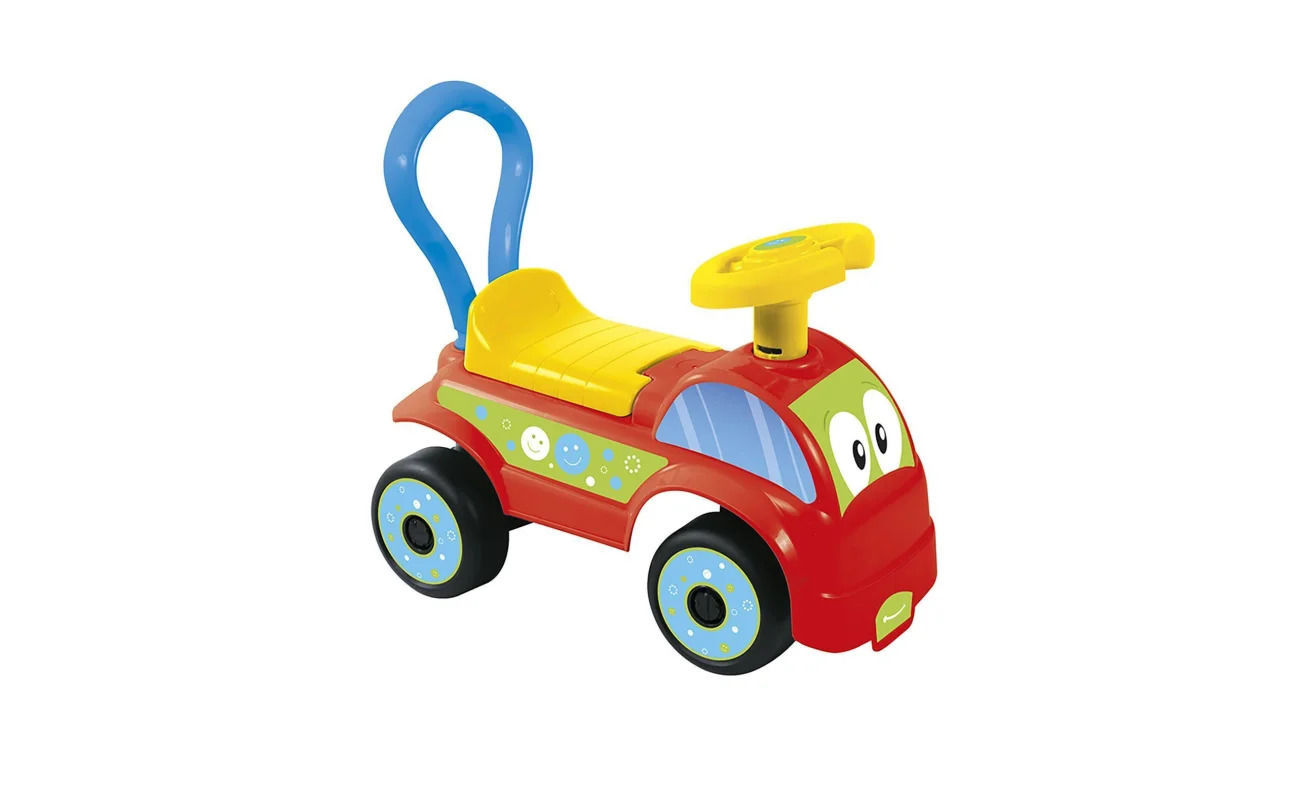 convient aux enfants de 12 mois et plus. La dimension est de 39 X 63,5 X 27 cm. Il peut être utilisé de deux manières. Il peut à la fois rouler avec les pieds et aide à marcher pour la première étape en poussant. Il a une corne. C'est dans la boite. Il a une installation facile. Elle profite au développement des enfants.