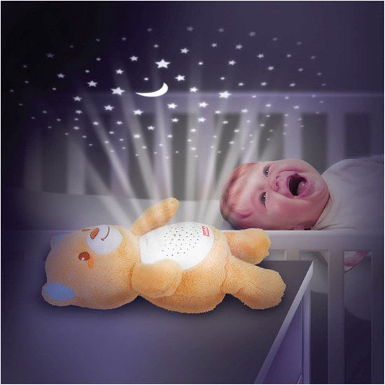 Ours Starlight 2 en 1 • Projecteur et veilleuse ours en peluche 2 en 1 • Projette un ciel étoilé apaisant • Lumière douce de différentes couleurs • Appuyez sur le bouton musique pour entendre les sons de la nature ou des berceuses apaisantes.