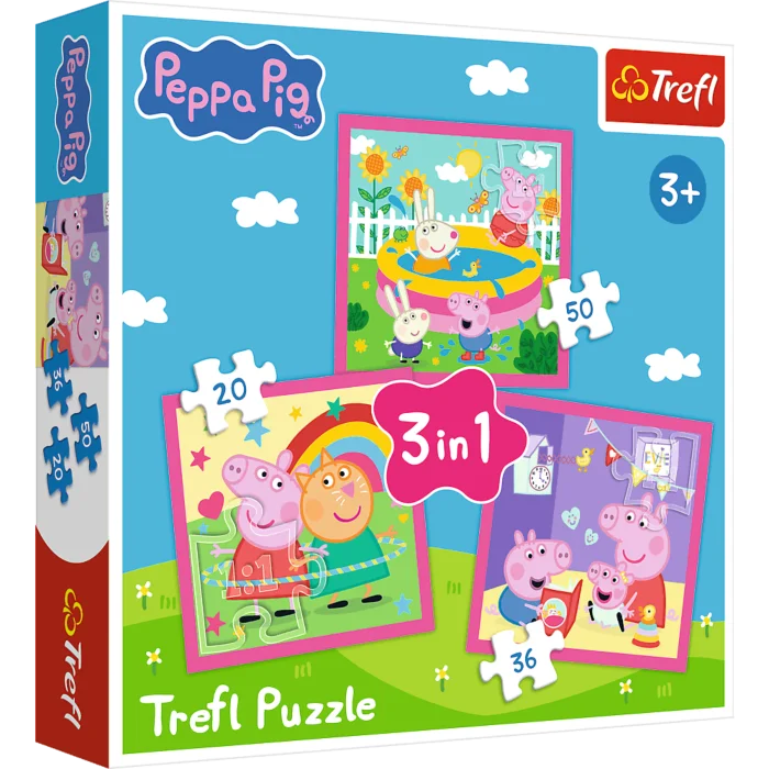 Le puzzle Trefl 3-en-1 Peppa Pig est un magnifique ensemble de trois puzzles indépendants, conçu pour tous les jeunes fans du dessin animé Peppa Pig. Chaque puzzle représente une scène différente avec Peppa et ses amis, pleine de couleurs et de fantaisie. Une fois assemblés, trois images apparaissent, dont la plus grande mesure 200 x 195 mm, offrant aux enfants une expérience visuelle agréable. Le nombre de pièces variable permet aux plus jeunes comme aux plus grands de jouer ensemble. Le puzzle Trefl 3-en-1 Peppa Pig est idéal pour développer la motricité fine, la patience et l'imagination des enfants, tout en offrant des moments de divertissement pour toute la famille.