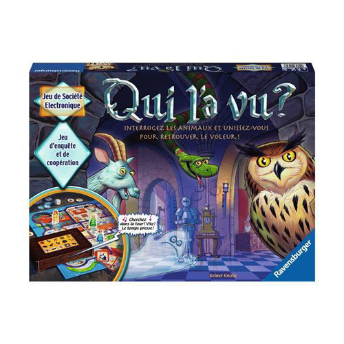 Jeu de coopération interactif. Une grande agitation règne au château : la bague magique du roi a été volée ! Cette bague est la seule à protéger le royaume du méchant sorcier ! Les animaux du château ont vu le voleur, mais seuls les enfants comprennent la langue des animaux. Hey, les enfants c'est à vous de jouer ! Unissez-vous et avancez ensemble, car c'est le seul moyen de retrouver le voleur ! Parcourez les pièces, parlez avec les animaux et récoltez un maximum d'indices pour retrouver la bague magique avant l'arrivée du méchant sorcier ! Des parties toujours différentes grâce au coffre magique interactif. De 1 à 6 joueurs. Durée d'une partie : environ 30 minutes. Dès 6 ans.