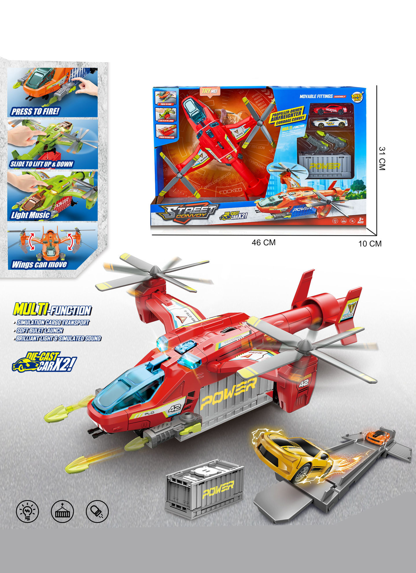 Hélicoptère de secours multifonction avec effets lumineux et sonores, lance-projectiles et ailes mobiles. Livré avec véhicules et accessoires pour des missions de sauvetage réalistes. Favorise l’imagination et le jeu d’aventure. Dimensions : env. 46 × 31 × 10 cm.
