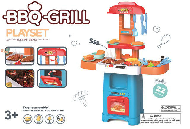 Ce jouet est destiné aux enfants à partir de 3 ans. Il est conçu pour imiter un barbecue avec plusieurs accessoires, permettant aux enfants de jouer à cuisiner de manière ludique et sécurisée. Caractéristiques principales Structure colorée : Le set est principalement rouge, orange et bleu, avec un design attrayant pour les enfants. Accessoires inclus : 22 pièces au total, comprenant des ustensiles de cuisine (fourchettes, cuillères, pinces), des aliments factices (viande, légumes, pain), et des éléments de cuisson. Dimensions : 51 x 20 x 64,5 cm. Ce jouet favorise l’imagination, le jeu de rôle et la motricité fine des enfants.