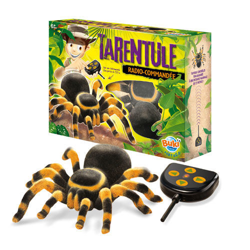 Une tarentule radiocommandée accompagnée d'un livret pour apprendre et s'amuser ! La télécommande a une portée de 7,5 mètres et permet de diriger l'araignée dans 4 directions : avant, arrière, gauche et droite. Les pattes de l'araignée sont articulées.